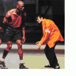 バスケットボールなどについて患者の家族や選手自身、そして指導者からも良く聞くのが筋トレをすると体が重くなるので良くないという意見だ。しかし、マイケルジョーダンの体をよく見て欲しい。反対に一緒に写っているマイケルジャクソンはまったく筋トレはしないしたんぱく質もなるだけ摂取しない菜食主義者である。ジョーダンの筋肉もトレーニングなくては発達しない三角筋(肩の筋肉)僧坊筋(頚部から肩関節にかけての筋肉)をしている。