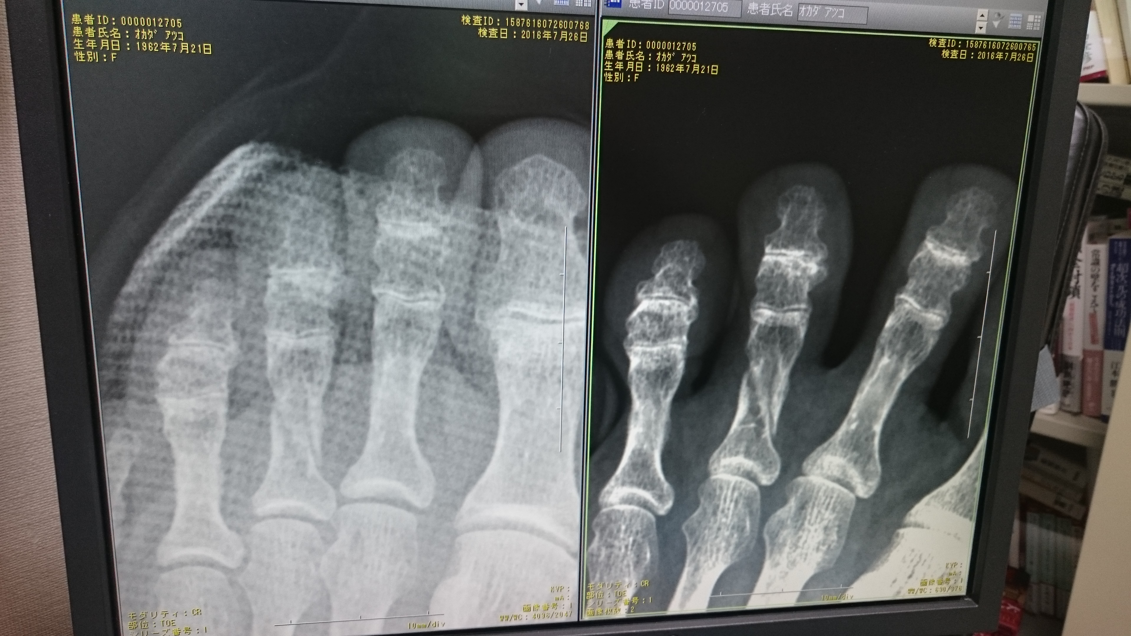 2016年7月26日 17:31 太陽クリニックブログ 足趾の打撲骨折 今日は足趾の打撲、骨折がやたら多かった。 骨折は無麻酔で(ごめんね)整復してシーネで固定した。 台所でとか、居間でとか、畳の部屋の段差でとか3人ほど同じ場所の怪我で来院した。 怪我には注意ですね。 コメントは受け付けていません。