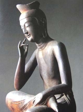 京都の広隆寺の弥勒菩薩の半跏思惟像(はんかしゅいぞう)(国宝)