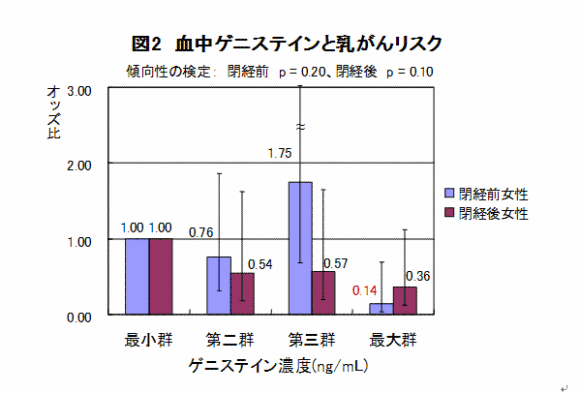 イソフラボン濃度と乳がんリスクの関連は閉経状態で異なるか?